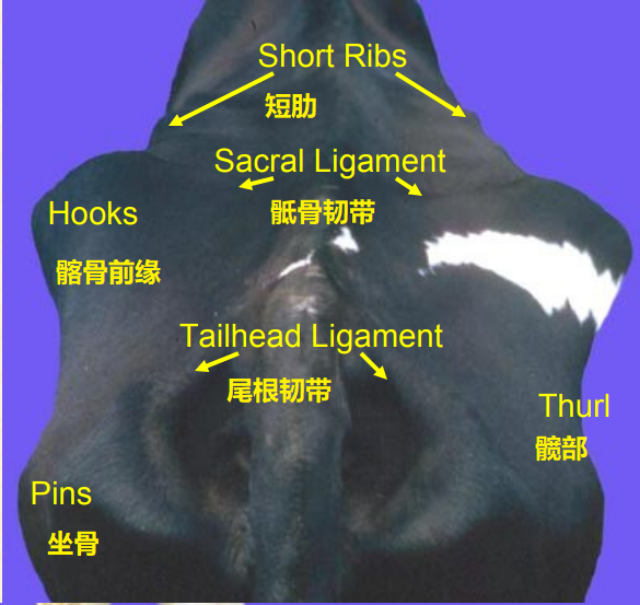 固定的評(píng)分方向,從奶牛后側(cè)和右側(cè)評(píng)估,減少瘤胃充盈度對(duì)體況評(píng)分的影響。